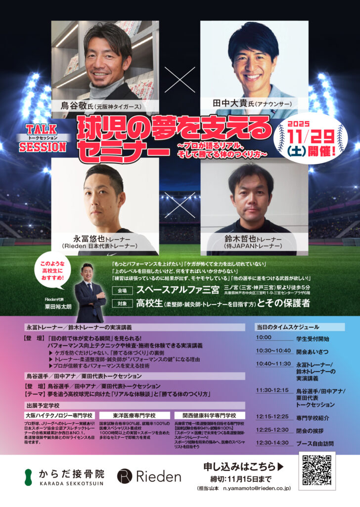 高校球児必見の パフォーマンス向上テクニックや検査・施術体験 を通して、必ず成長を実感できる内容です。