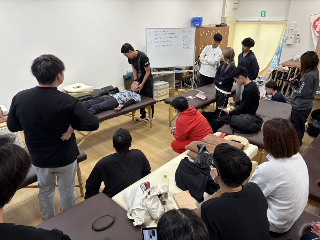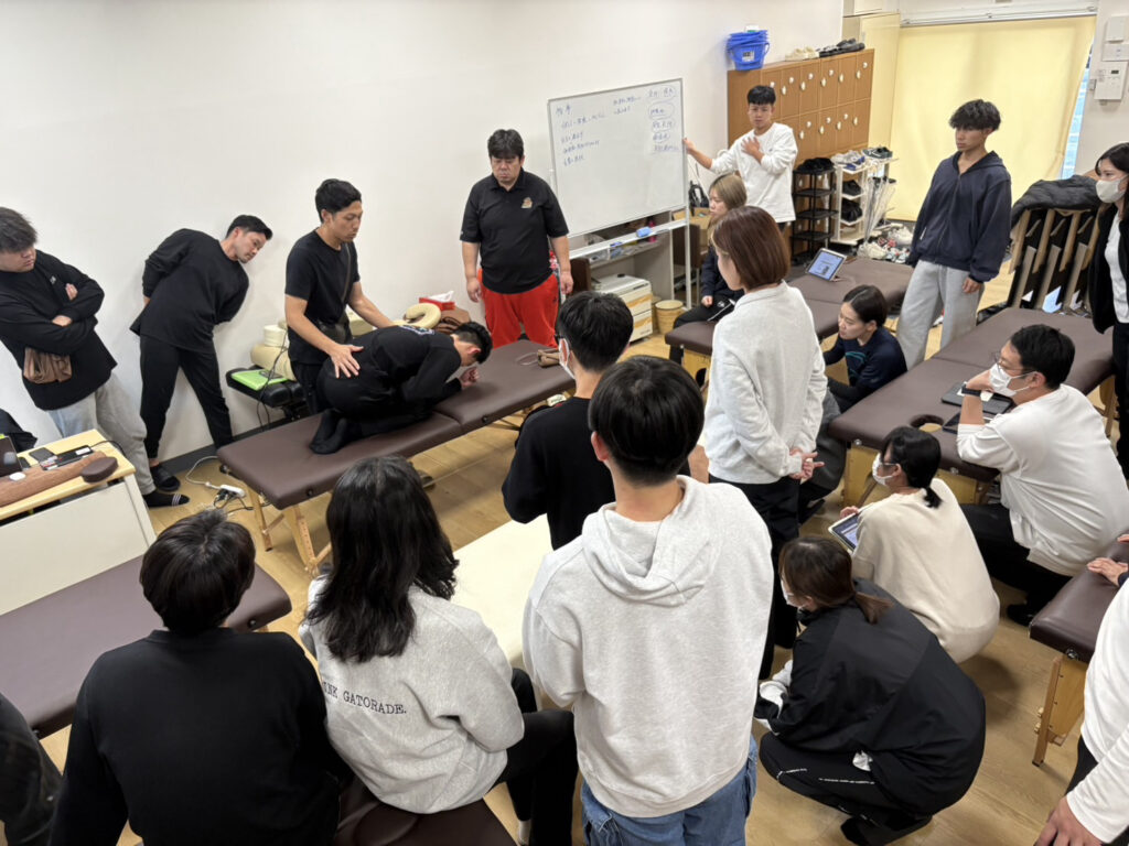前回の復習に加えて、評価の手順やリスクマネジメント、そして実技での「動作分析・実践練習」を実施しました。