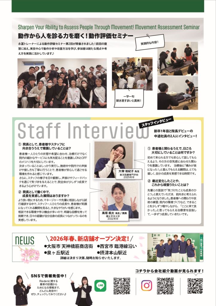 治療家として成長できるのはもちろん、人としても成長できるのはRiedenだ!」と入社を決める方が多いのも納得できる内容になっています!