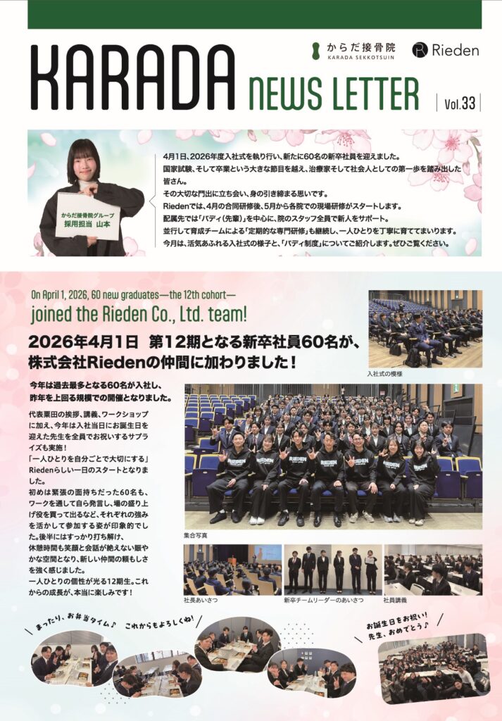 Rieden(からだ接骨院グループ)の採用ニュースレター4月号をお届けします。